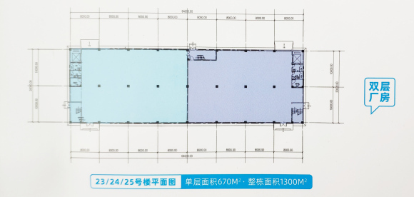单层面积670㎡,整栋面积1300㎡