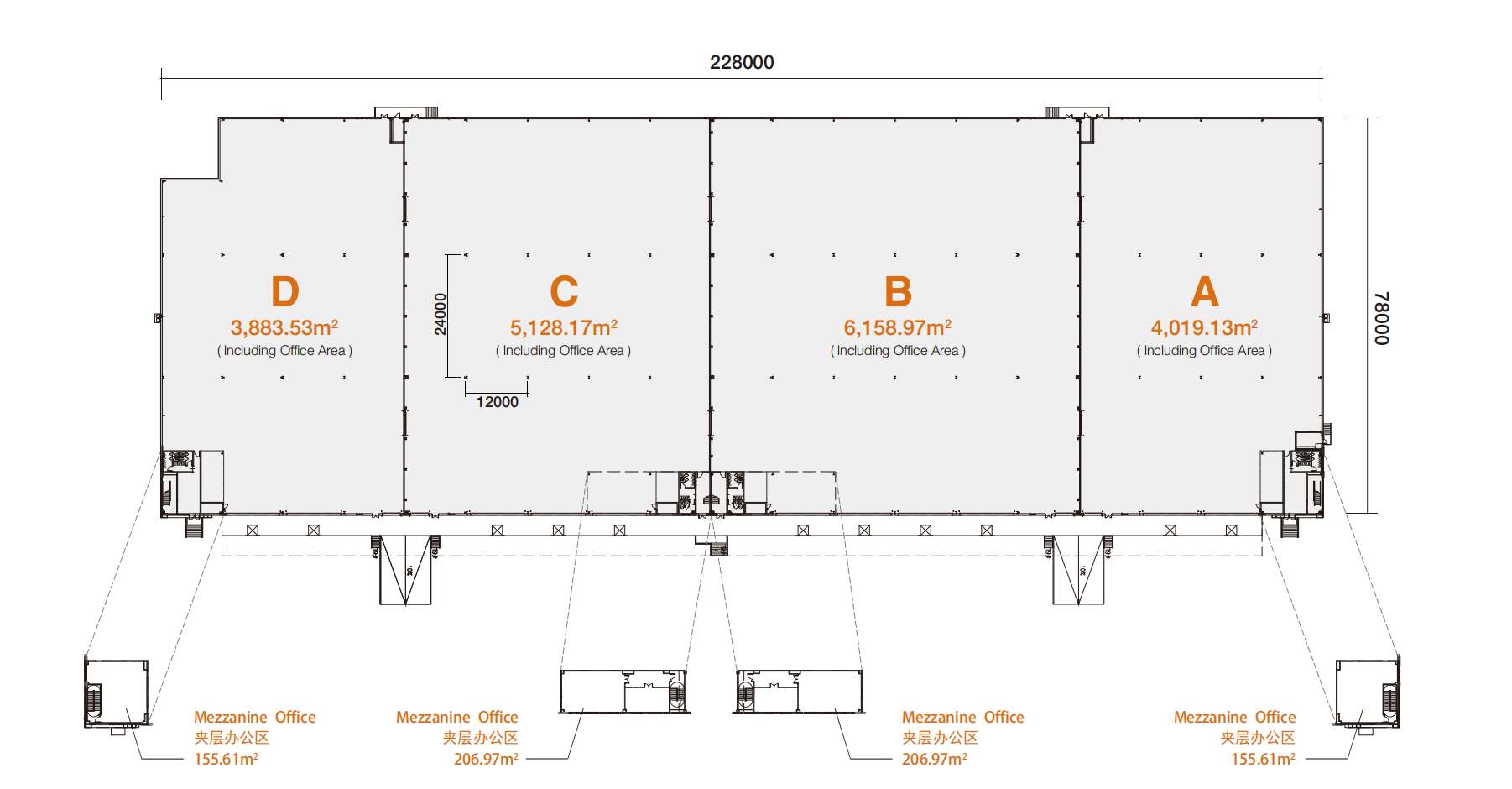 | 支柱网格 | 12.0mx24.0m | ||||