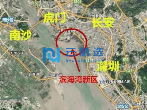 滨海湾新区地处粤港澳大湾区几何中心,毗邻广州、深圳两大经济强市,邻近香港、澳门两大特别行政区。滨海湾新区由交椅湾、沙角半岛和威远岛三大部分组成,规划面积83.2平方公里,其中现状陆域面积51.8平方公里,规划建成后陆域面积60.3平方公里。交椅湾部分,面积20.36平方公里,现状滩涂面积8.35平方公里,海域面积12.01平方公里,规划建成后陆域面积16.8平方公里;沙角半岛部分,具体范围是交椅湾以西、广深沿江高速以南的长安镇和虎门镇地区,面积33.5平方公里,现状陆域面积23.8平方公里;威远岛部分,面积共29.3平方公里,现状陆域面积19.67平方公里。
