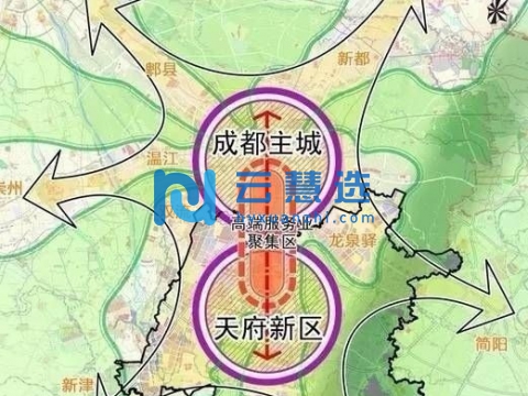 天府新区总体空间布局:一城六区。“一城”:天府新城。“六区”:双流高技术产业功能区、龙泉高端制造产业功能区、成都科学城、成眉战略新兴产业功能区、南部特色有色产业功能区、“两湖一山”国际旅游文化功能区。