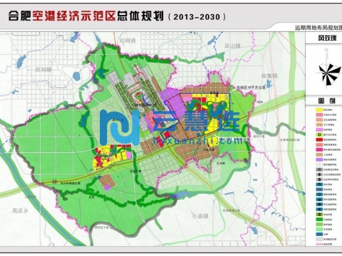 2014年6月,省政府正式批复同意设立省级合肥空港经济示范区。示范区坐落于国家级合肥经济技术开发区(北区),紧邻合肥新桥国际机场,是合肥市“1331”城市发展空间布局重点打造的3个卫星城之一。城镇空间发展结构为“一心、两园、三区”。“一心”:即一个临空高端商务休闲中心,围绕焦湖、宝教寺两大水库重点发展高端商务、总部经济、文化会展、酒店接待、休闲旅游产业等。“两园”:即两个特色园区,分别为航空物流加工产业园和临空高新技术制造产业园。“三区”:即三个配套服务区,分别为空港新市镇发展区、门户发展区和临空产业园配套居住服务区。经过两年多建设发展,空港经济示范区启动区十字形路网骨架基本形成,水电气热配套较为完善,口岸建设取得重大突破,招商引资逐步展开,发展框架渐次拉开。未来,示范区将依托新桥国际机场,重点发展以航空经济为引领的航空关联产业、高端制造业和电商物流业,努力打造成合肥经济发展的主要增长点、安徽对外开放的新平台和国家级临空经济示范区。