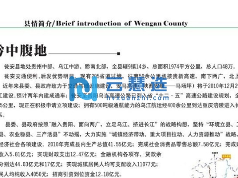 瓮安工业园区位于瓮安县北面的银盏镇,规划总面积35.04平方公里,是黔中经济开发区规划和贵州省工业十大产业振兴规划中规划的重要产业园区之一,是贵州省“十二五”规划的三十个重点产业园区之一,建成后园区规划总投资450亿元以上,工业增加值达147亿元以上,实现税收29亿以上,带动城乡就业4万人以上。